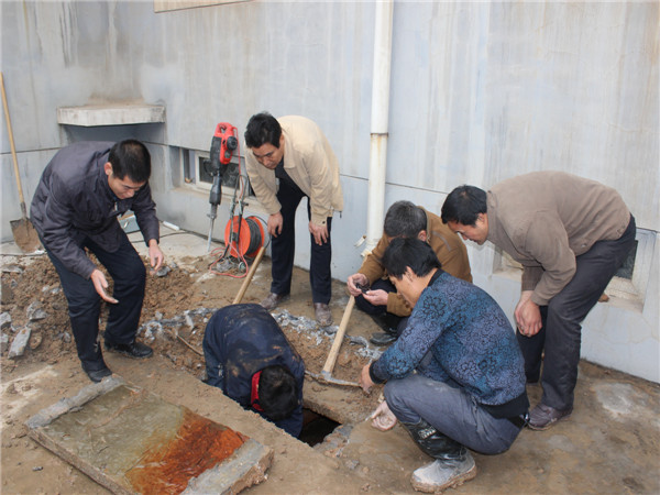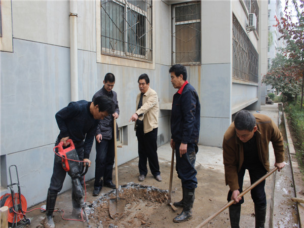 11日上午,熱力公司對(duì)河南街小區(qū)進(jìn)行加壓試氣,工作開展半小時(shí)后,換熱站工作人員就發(fā)現(xiàn)設(shè)備處于低壓運(yùn)行狀態(tài)。經(jīng)與維修人員查看,問題出現(xiàn)在4號(hào)樓三單元地下管網(wǎng),維修部立刻對(duì)出現(xiàn)問題段地面進(jìn)行開挖,物業(yè)公司總經(jīng)理趙明海,副總經(jīng)理魏述剛第一時(shí)間趕赴現(xiàn)場(chǎng),指導(dǎo)維修人員并參與搶修工作。
